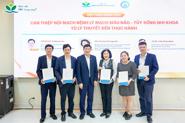 Bên cạnh đó, hội thảo còn có nhiều báo cáo chuyên môn quan trọng khác như: tổng quan và chiến lược điều trị dị dạng mạch máu não ở trẻ em; chẩn đoán hình ảnh dị dạng mạch máu não nhi khoa với các vấn đề cốt lõi; kết quả điều trị bệnh Moyamoya tại Bệnh viện Nhi Trung ương; kinh nghiệm can thiệp các dị dạng mạch máu não phức tạp ở trẻ em thông qua các ca bệnh lâm sàng điển hình.