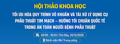 Viện Đào tạo và Nghiên cứu Sức khỏe Trẻ em – Bệnh viện Nhi Trung ương xin trân trọng thông báo và kính mời các cán bộ, nhân viên y tế tham dự Hội thảo khoa học: Tối ưu hóa quy trình vô khuẩn và tái xử lý dụng cụ phẫu thuật tim mạch – Hướng tới chuẩn quốc tế trong an toàn người bệnh phẫu thuật.